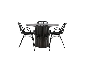 Lanzo Matgrupp 120 cm Rund med 4 Modesto stolar, Svart
