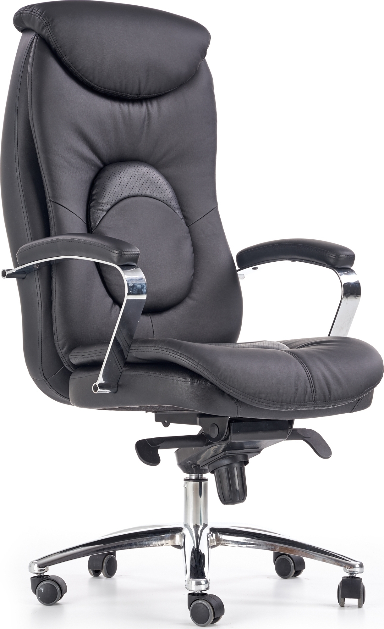 En härlig kontorsstol med en modern design. Kontorsstolen är klädd med ett mycket behagligt konstläder för maximal komfort. Stolens höjd är lätt justerbar med hjälp av spaken under sitsen och stolen är lätt att förflytta tack vare hjulen på stjärnfoten.