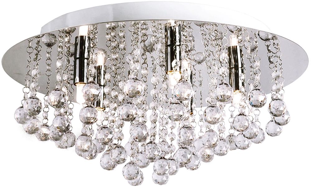 Taklampa i metall med krom utförande och kristall detaljer i akryl. Lätt montering i tak.
