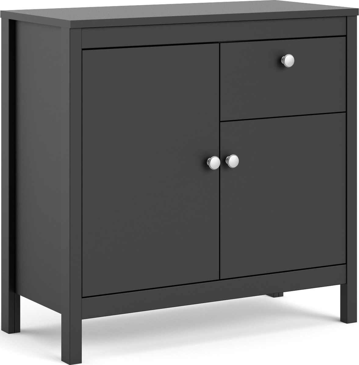 Skåp av trä med kantband av melamin och ABS-plast. Levereras med 2 olika typer av handtag.