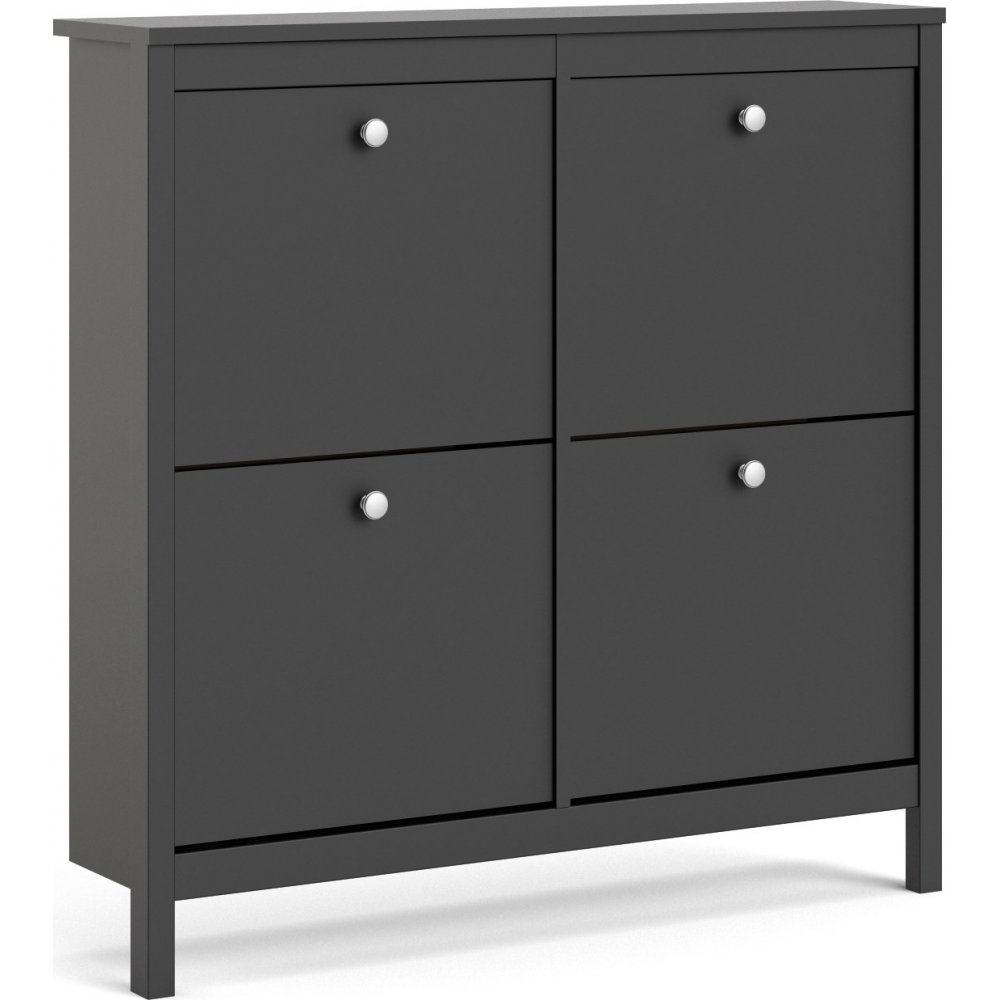 Skoskåp av trä med kantband av melamin och ABS-plast. Levereras med 2 olika typer av handtag.