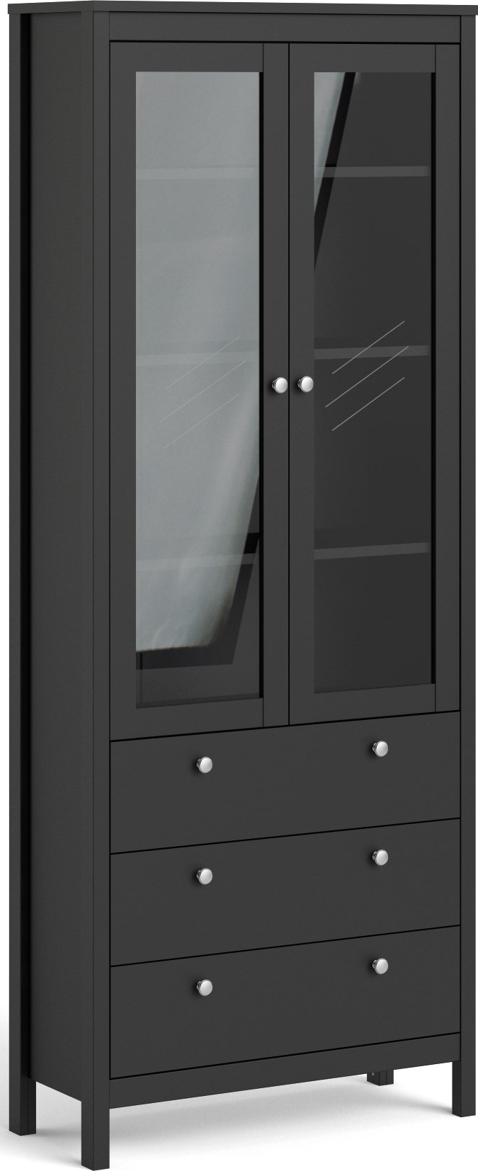 Skåp av trä med kantband av melamin och ABS-plast. Levereras med 2 olika typer av handtag.