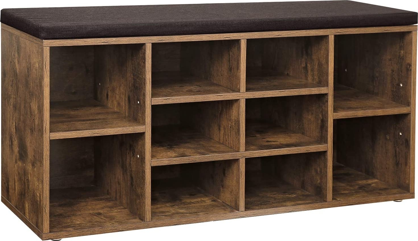 Hallbänk av trä med förvaringsfack. Kan rymma 10 par skor upp till storlek 44, och dess sidofack med justerbara avdelare gör att även skor med höga klackar eller stövlar kan få plats. Klarar en maxvikt av 150 kg.