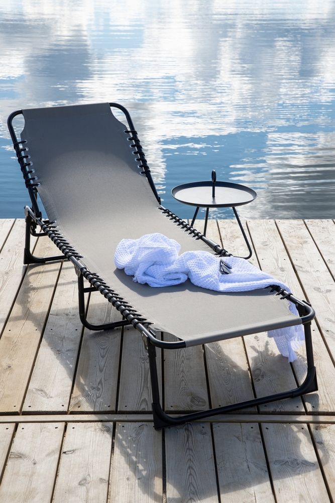Solen strålar, fåglarna kvittrar, och du längtar efter en stunds avkoppling utomhus. Med solsängen Majken kan du omvandla varje plats till din egen personliga oas. Majken är en stilfull och bekväm solsäng som är designad för att ge dig den ultimata sol- och avkopplingsupplevelsen. Majken är tillverkad med en stadig stålstomme. Klädseln är tillverkad av textilene i en elegant svart/grå färgkombination. Den mjuka och behagliga ytan ger en skön känsla mot huden och är samtidigt enkel att rengöra och underhålla. Det justerbara ryggstödet på Majken ger dig full kontroll över din sitt- eller liggställning, så du kan anpassa den efter dina egna preferenser. Oavsett om du föredrar att ligga platt och sola eller att luta ryggstödet upp för att läsa en bok, kommer Majken att vara din trogna följeslagare. Majken är också enkel att transportera och placera var som helst. Ta med den till din trädgård, terrass, eller varför inte till bryggan vid vattnet? Den kompakta designen gör det enkelt att flytta solsängen precis dit du vill ha den. Så varför vänta? Placera solsängen Majken på bryggan, slappna av och låt solens strålar omfamna dig medan du njuter av en stund i frisk luft. Med Majken blir varje dag en dag att komma ihåg, och din egen lilla oas är alltid nära till hands. Köp din Majken solsäng idag och ge dig själv den avkoppling du förtjänar.