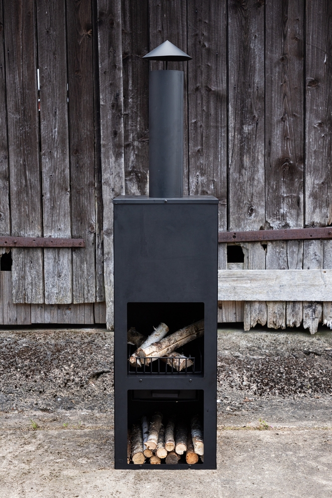 Makarima - vår lyxiga eldstad som snabbt skapar en mysig atmosfär på uteplatsen! Designen är stilren med raka nordiska former och har en cylinderformad skorsten. Eldstaden är tillverkad av svart stål med en stor öppning som även har ett smart galler undertill. I botten finns även plats för förvaring av ved. Makarima blir både en värmande kompis och en snygg detalj till uteplatsen. Här kan du göra upp en mysig liten eld att värma dig och gästerna framför under försommaren och sena sommarkvällar!