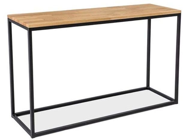 Ett mysigt konsolbord med en stilren design. Underredet är tillverkat av svart metall och bordsskivan är av MDF med ett härligt ek fanér.