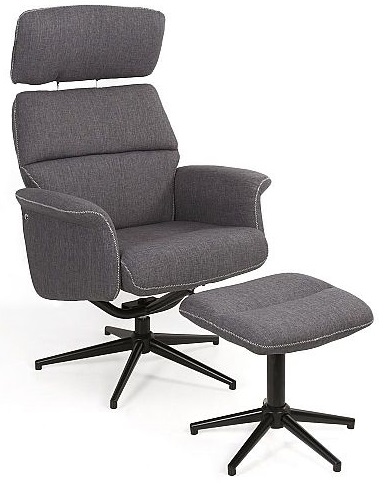 Malmö reclainerfåtölj med fotpall - Grå (Tyg)