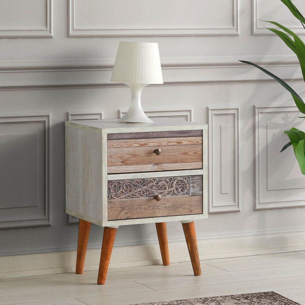 Malmö sängbord - Vit/valnöt