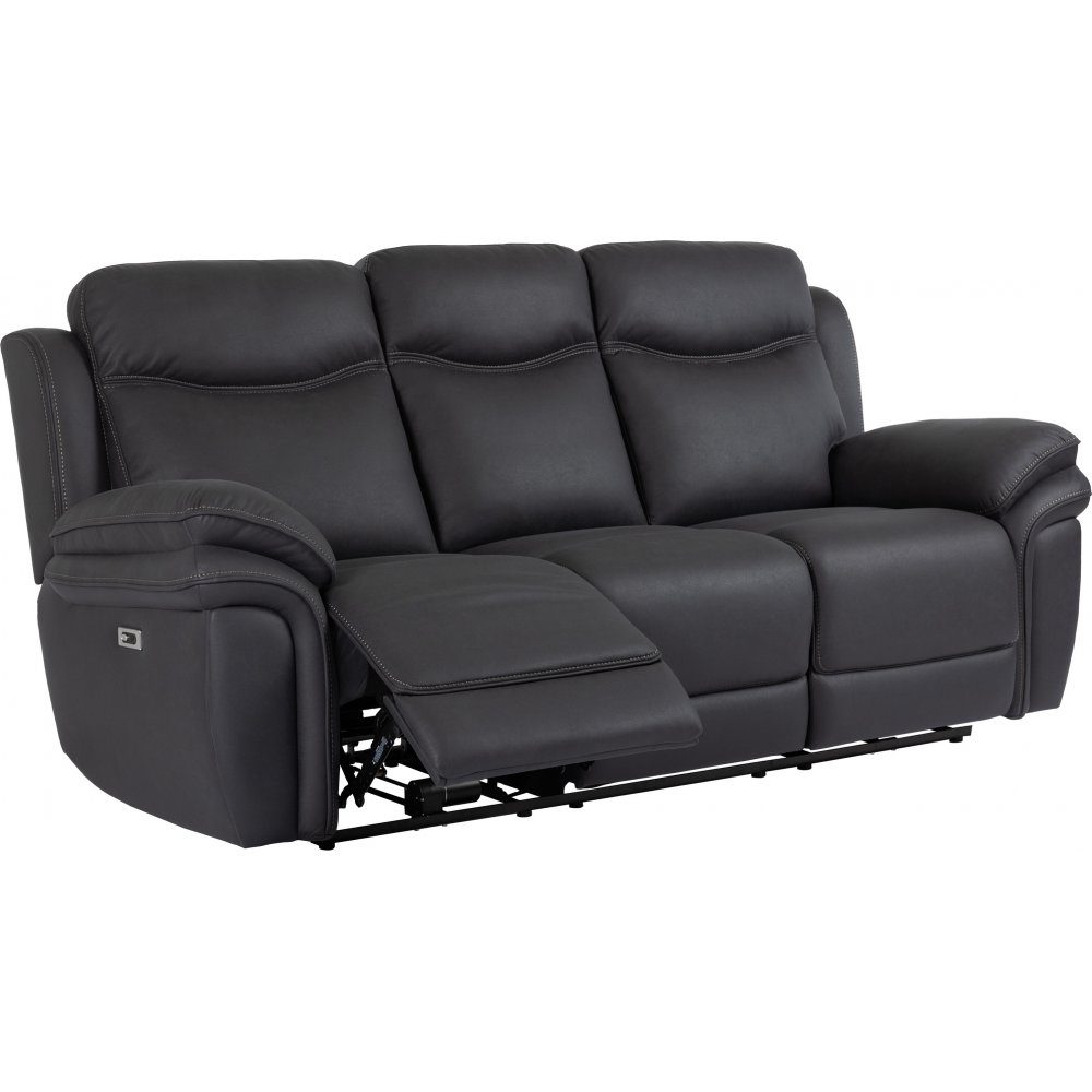 Reclinersoffa i polyestertyg med pocketfjädring, USB-uttag och elektrisk recliner.