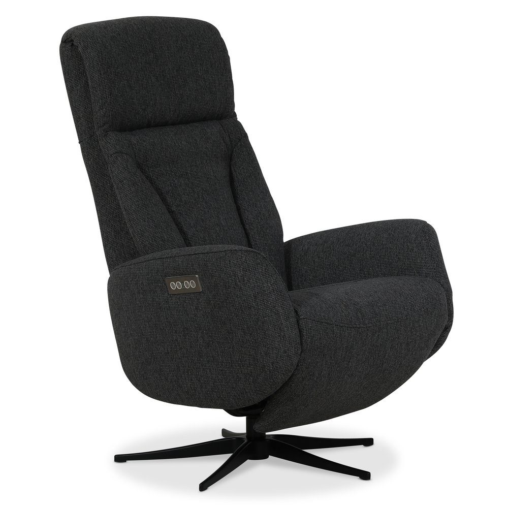 Marbäck är en bekväm reclinerfåtölj med 2 separata el-motorer och inbyggt fotstöd. Fåtöljen har snurrfunktion, justerbart ryggstöd, sits och nackstöd som fälls i valfri position. Modern och arbetad design. Fåtöljen är klädd i ett mörkgrått slitstarkt tyg. Funktionen av två stycken separata el-motorer innebär att man kan justera ryggstödet separat eller fotstödet separat.