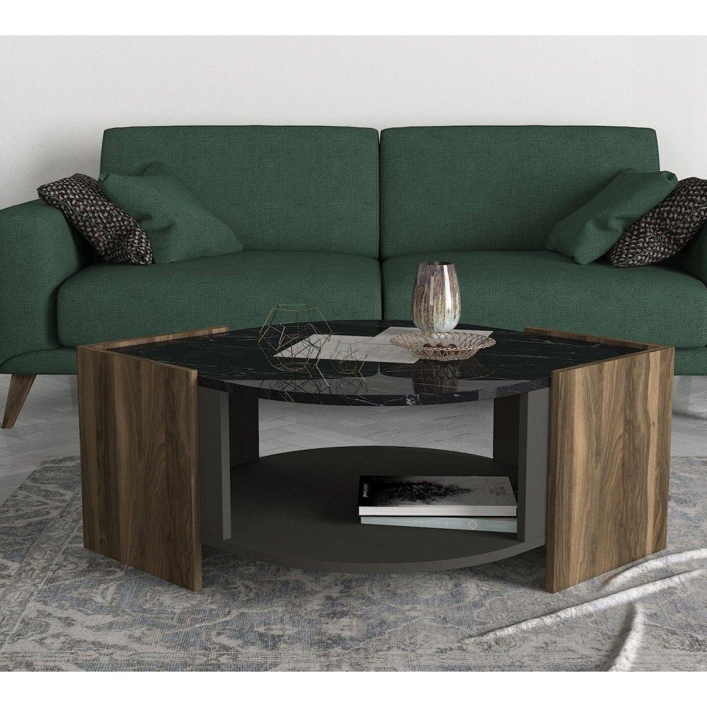 Marbel soffbord 75 x 75 cm - Valnöt/grå/svart