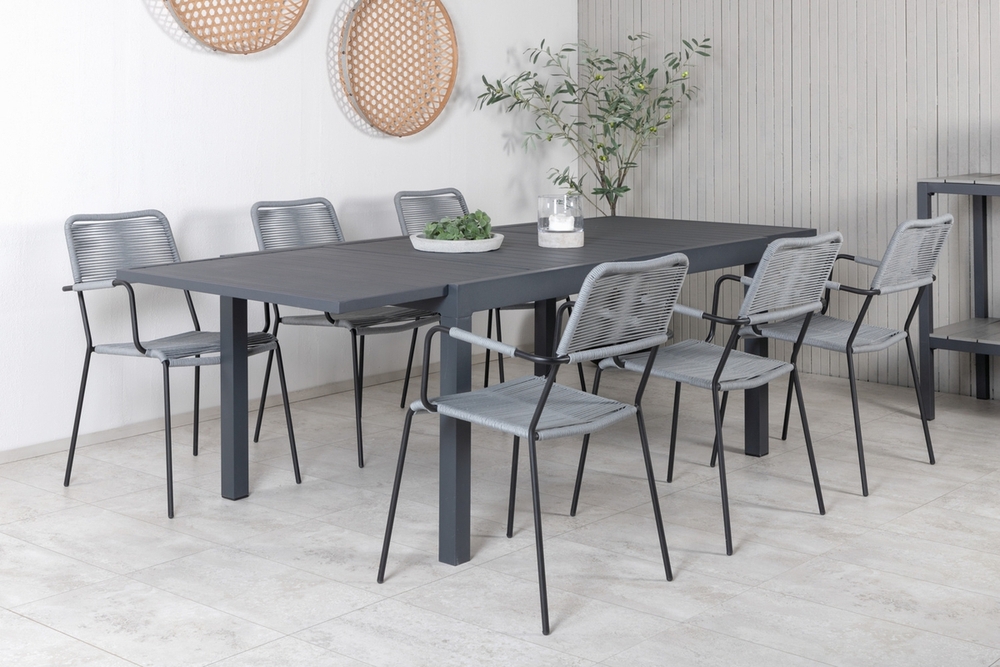 Marbella utematgrupp med 6 st Lindos stolar - Svart/Grå