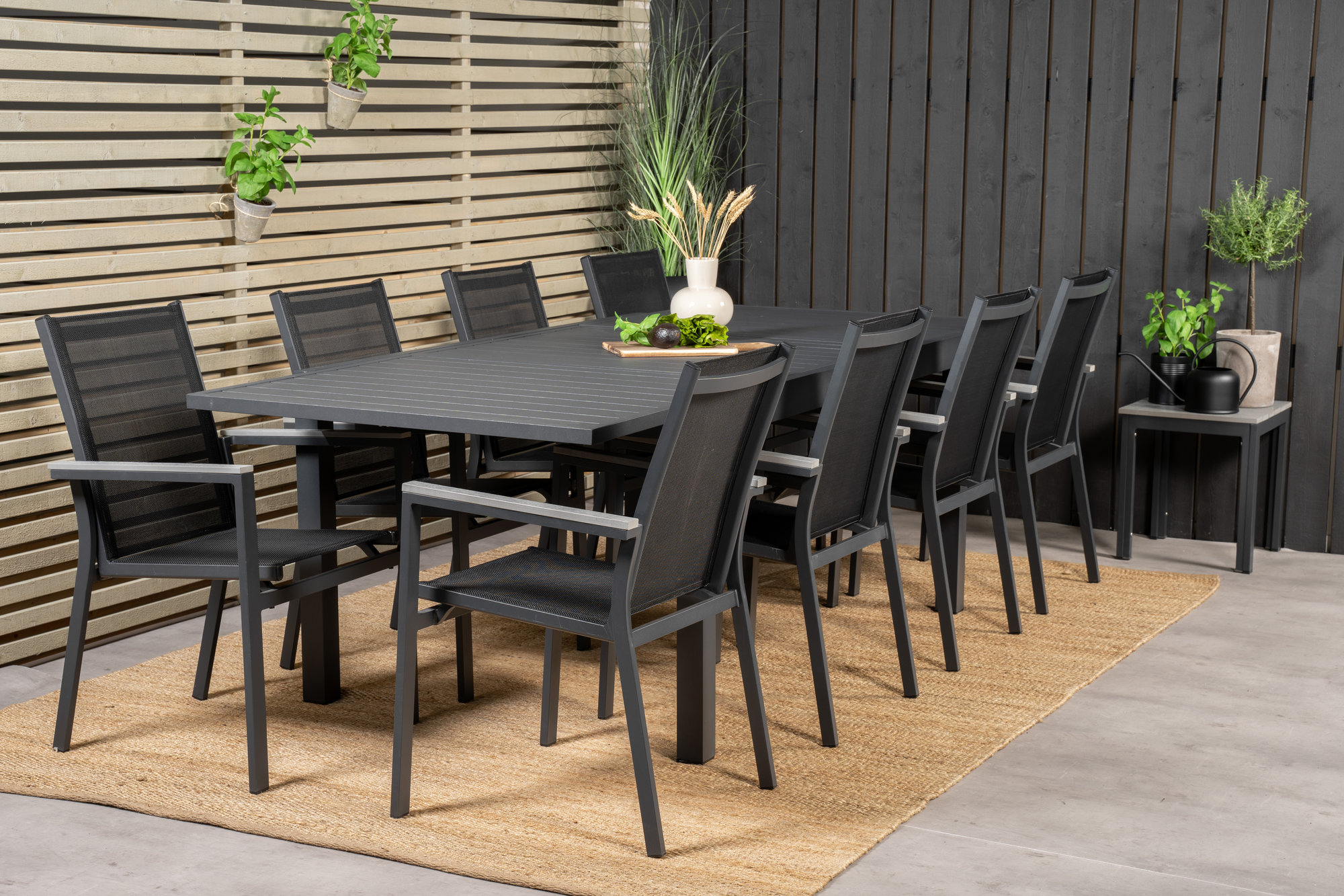 Marbella utematgrupp med 8st stapelbara Panama stolar - Svart