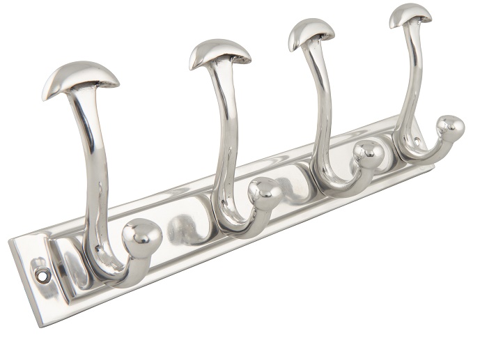 Kroklist med 4 st hållare i kromad metall för upphängning av diverse plagg. Passar i såväl badrum, som hall och sovrum.