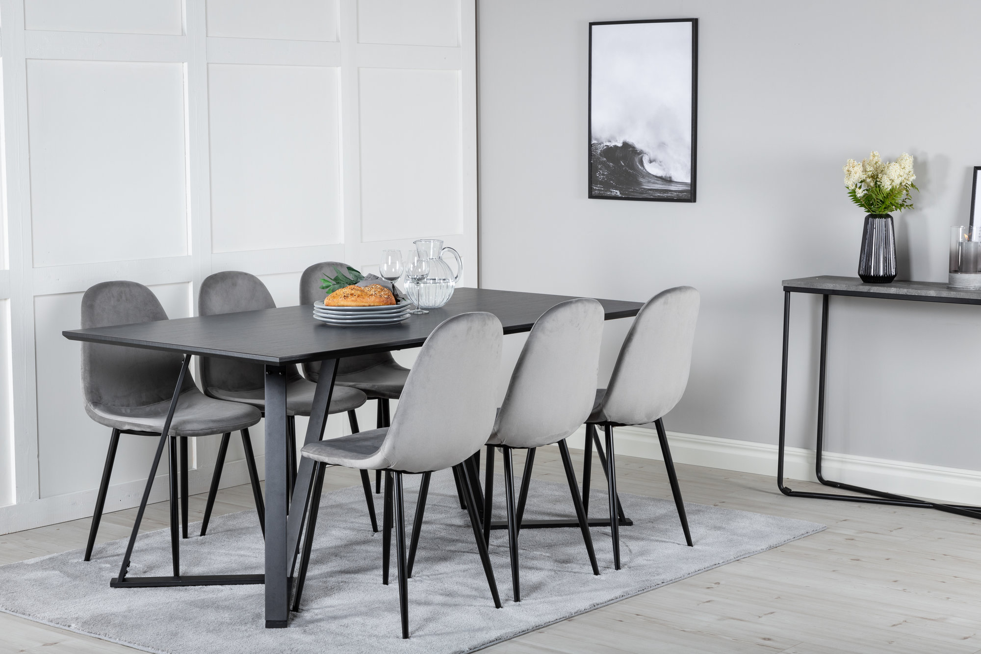 Modernt och ombonat! Matbord Marina i svart tillsammans med grå Polar matstolar ger dig en matgrupp att längta hem till. Stolarna är robusta och väl tilltagna – här sitter du gärna kvar länge och njuter av goda vänners sällskap!