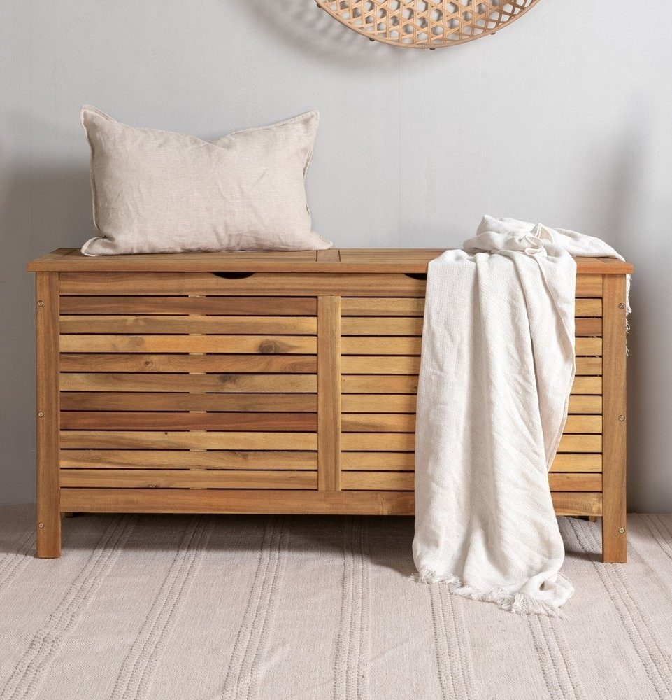 Vem älskar inte att kunna kombinera förvaring med tidlös design? Med dynboxen Marion i akacia förvarar du säkert dina dynor i en stilsäker förvaringslösning som varar över tid. En inredningsdetalj som bidrar med värme och ger en inbjudande känsla!SKÖTSELRÅD:För att dina utemöbler i Akacia/hårdträ ska bibehålla sin finish bör de oljebehandlas. Eftersom träslagen i sig inte är lika feta av naturen behöver de oljas lite då och då, även under säsong. Nyinköpta möbler ska mättas med olja, applicera flera lager efter varandra så maximalt med olja absorberas. Torka bort det som blir överflödigt. Sätt som rutin att möblerna behandlas innan de tas ut för säsongen - och sedan ett par gånger varje säsong.