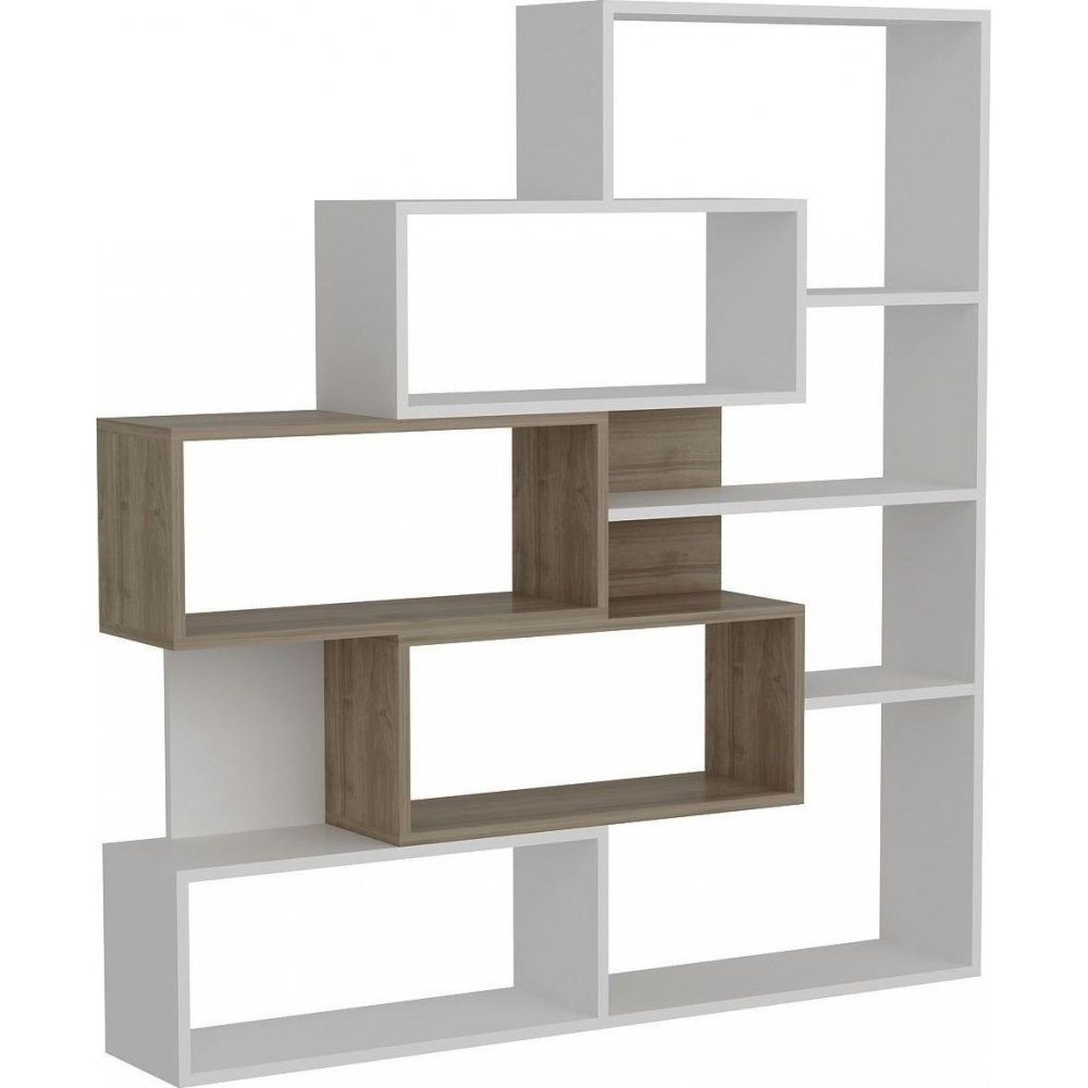 Bokhylla av melaminbelagd spånskiva.