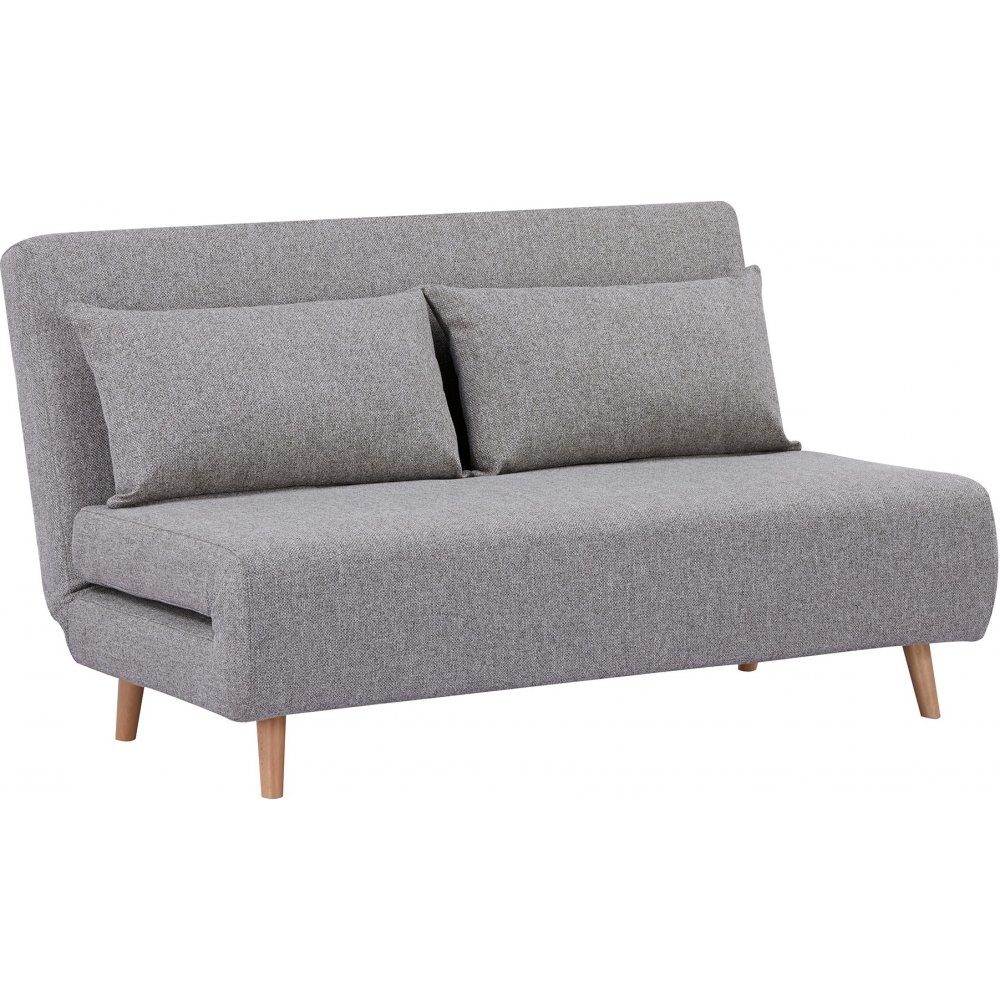 Bäddsoffa med klädsel av polyester och ben av björk. Levereras omonterad.