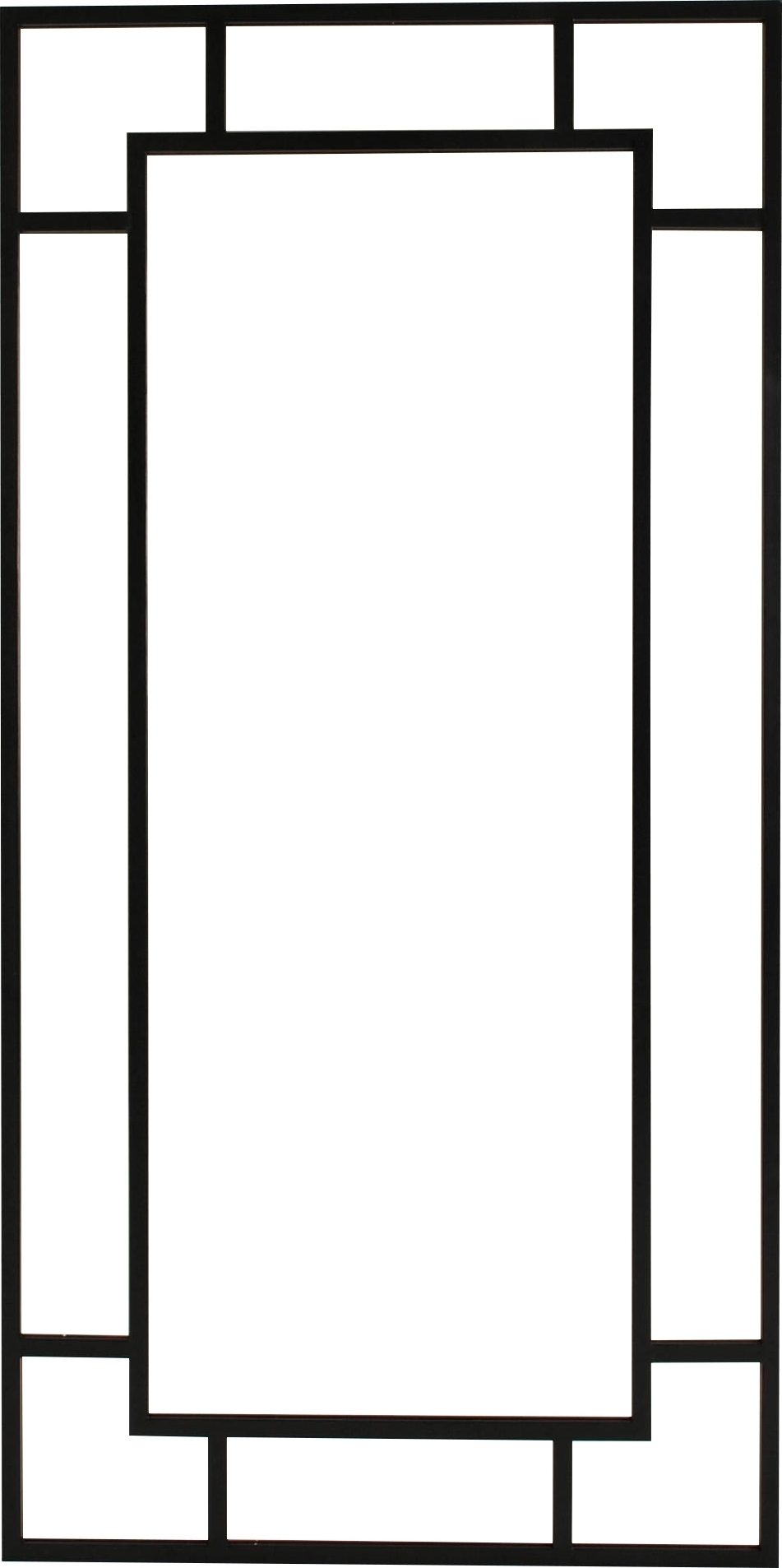 Spegel med metallram i antiksvart, dekorerad med profil i samma färg och struktur som ramen.