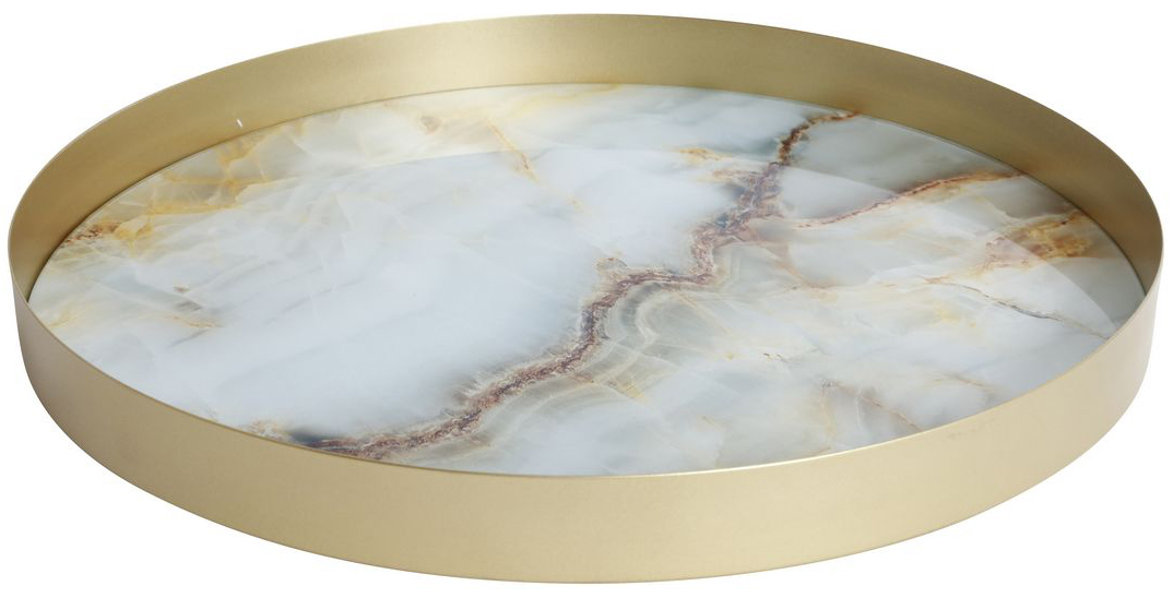 Dekorativ rund bricka i vår serie "Marmor" med ett brunt stenmönster.