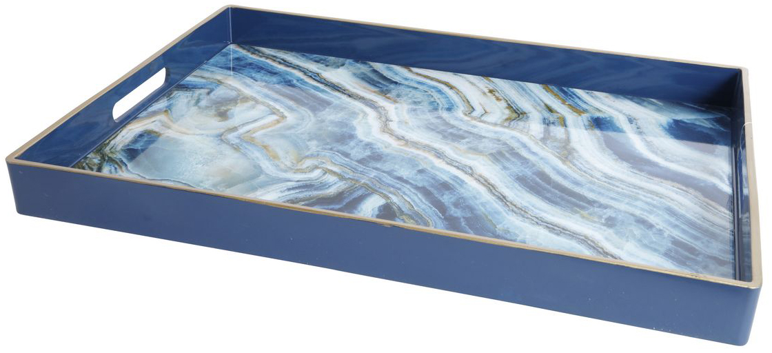 Dekorativ bricka i vår serie "Marmor" med ett ljusblått stenmönster.