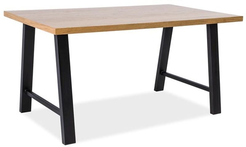 Ett härligt matbord med en stilren design. Underredet är tillverkad av svart pulverlackerad metall och bordsskivan är av MDF med ett vackert ek fanér.