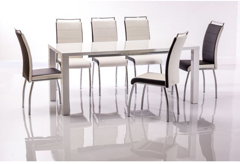 Ett snyggt matbord med en stilren design. Underredet och bordsskivan är tillverkade av vitlackerad MDF. Bordet är praktiskt då det lätt kan förlängas från 140 cm till 180 cm. Tilläggsskiva ingår.