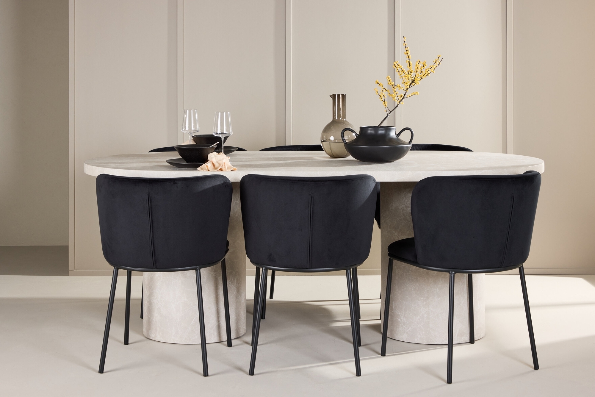 Matbord Narvik med 6 st Edina stolar - Svart/beige + Stolsdyna