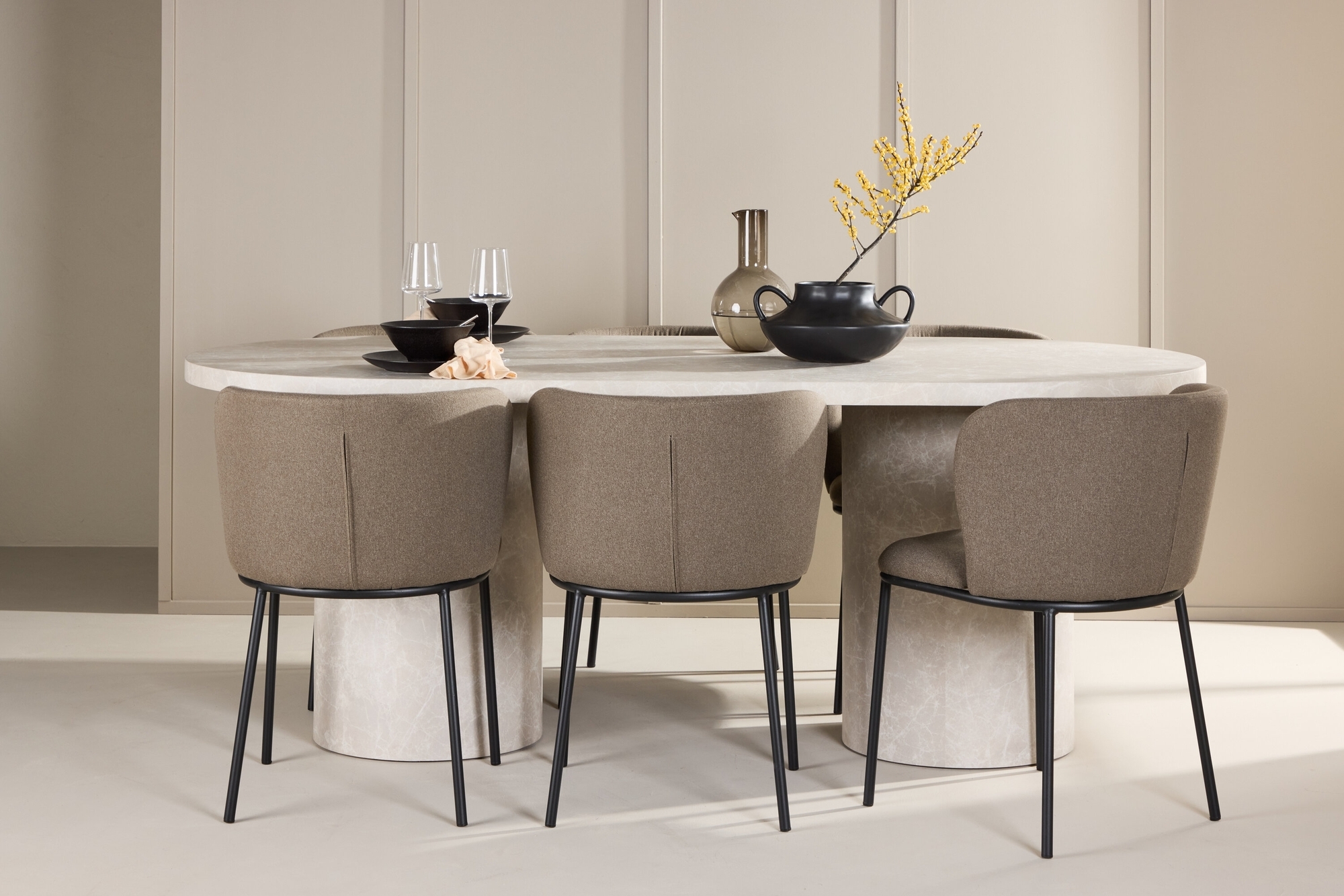 Matbord Narvik med 6 st Edina stolar - Svart/brun/beige