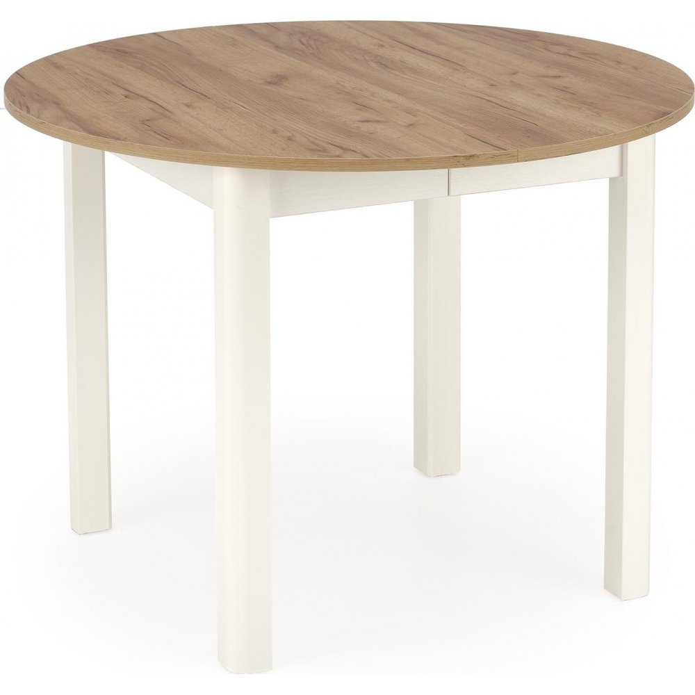 Berivan matbord är ett runt och förlängningsbart bord som enkelt kan justeras från 102 till 142 cm, vilket gör det lika praktiskt för vardagens måltider som för större middagar. Bordet har en varm ekfinish som ger en naturlig karaktär och en vit bas som tillför ljus och modernitet. Den runda formen bjuder in till samtal och gemenskap, och den stabila konstruktionen säkerställer lång livslängd.