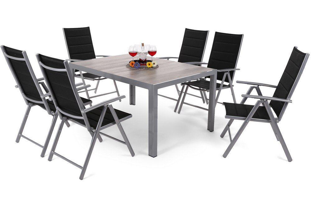 Matgrupp Capri 145 cm - silver/svart, inkl. 6 positionsstolar