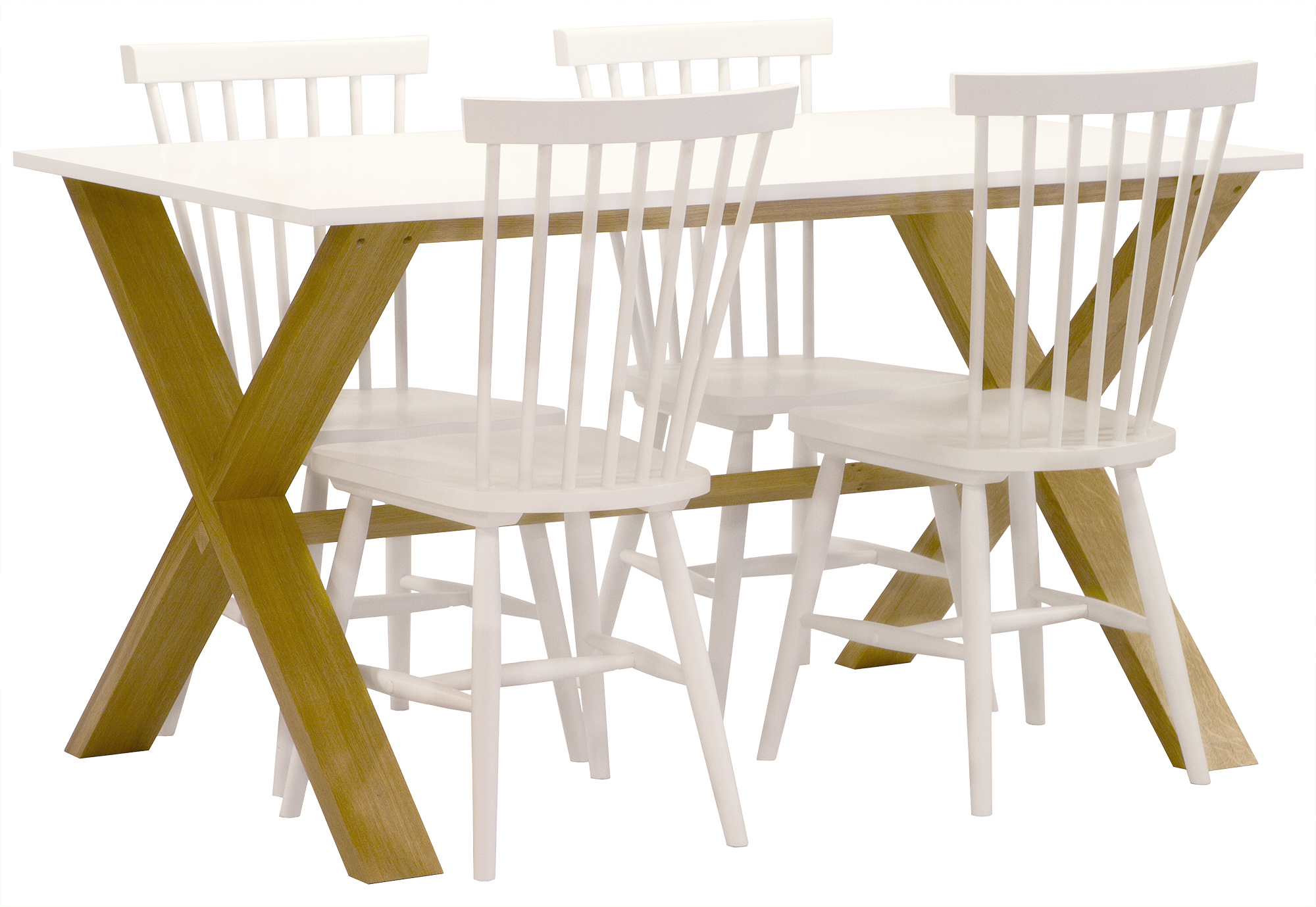 Matgrupp: NordiForm Artic matbord 140 - ek / vit + 4 st Karl pinnstol - vit