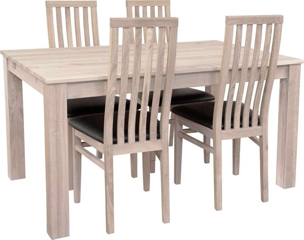 Inklusive 4 st Alaska matstolar med stomme av europeisk vitpigmenterad ek, högt bekvämt ryggstöd, samt sits av svart ecoläder.