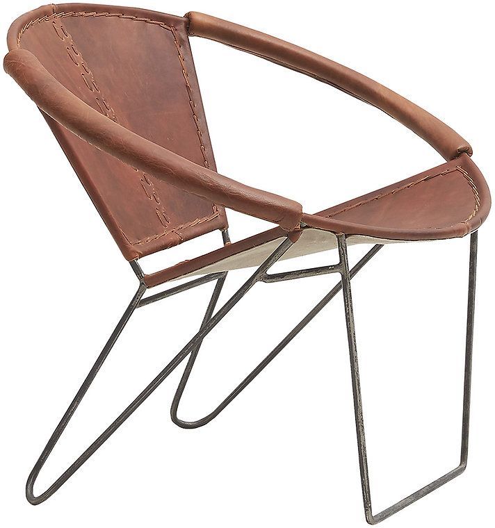 Melissa fåtölj i läder med mocca brunt utförande och metall underrede.