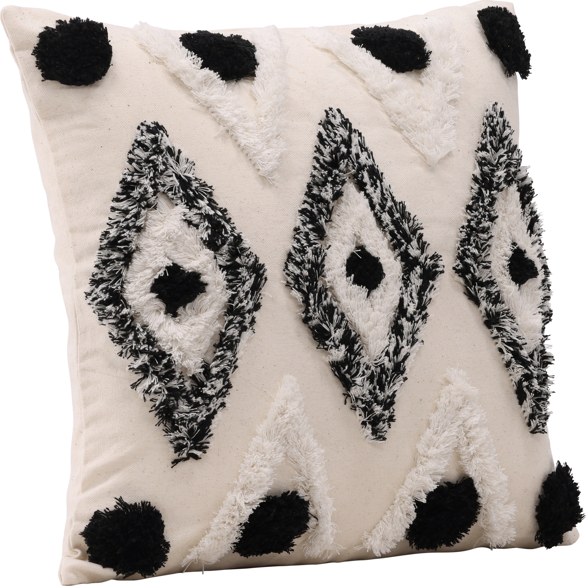 Kuddfodral som kombinerar komfort med moderna mönster. Det här kvadratiska kuddfodralet har en vit färgbas och ett abstrakt mönster i tuftat material i både vit och svart kulör. Tillverkat i en perfekt polyester- och bomullsblandning som är både följsam och slitstark. Skapa ett snyggt blickfång i soffgruppen med en trendsäker kudde som enkelt går att matcha och kombinera med andra kuddfodral.
