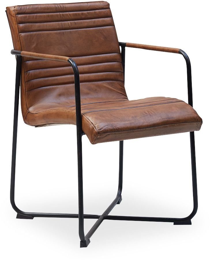 En mysig matstol med en retro design. Stolens underrede är tillverkat av svart metall och sitsen är klädd med ett mycket behagligt läder för maximal komfort.