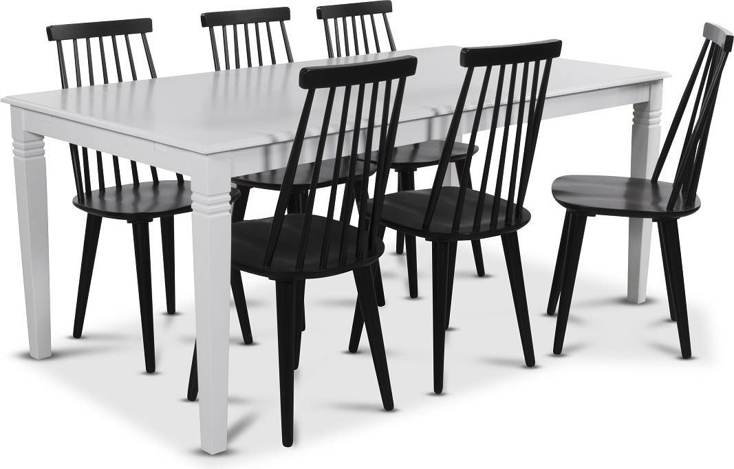 Mellby matgrupp 180 cm bord med 6 st svarta Dalsland Pinnstolar: