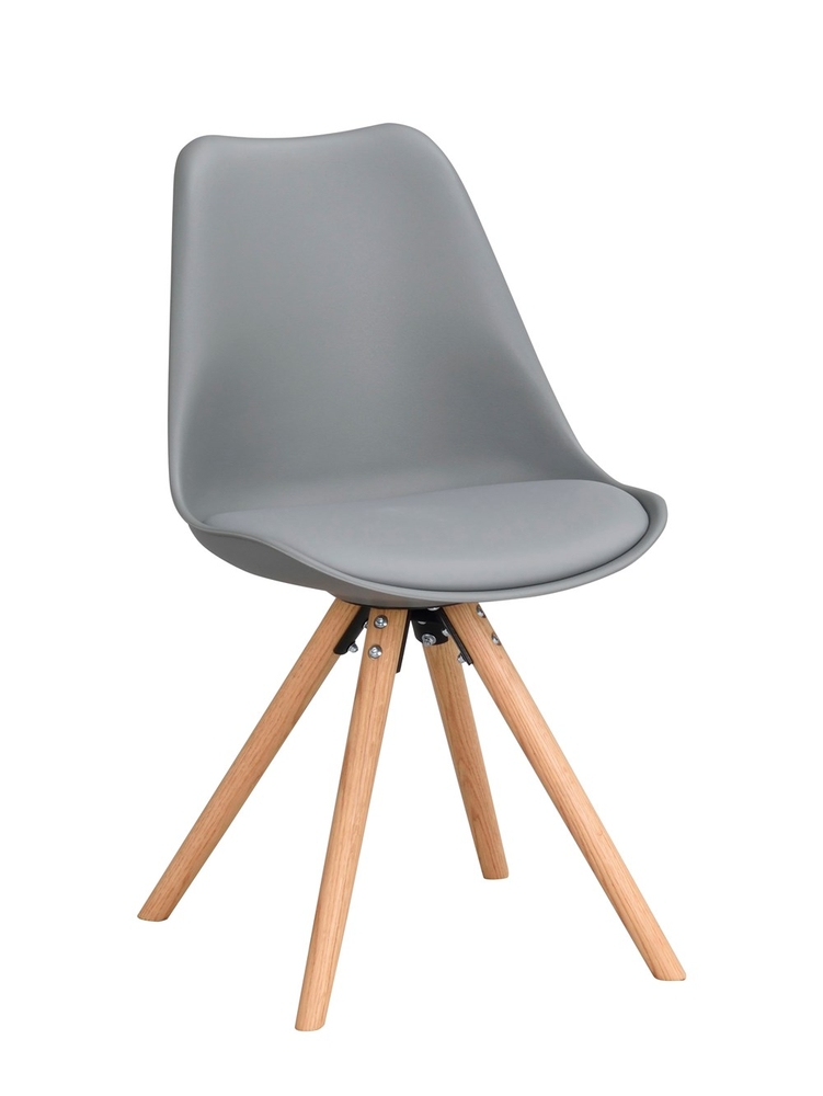 Melle är en skön stol som flörtar med moderna designideal. Bekväm och praktisk i tålig hårdplast med tillhörande sittdyna i konstläder.