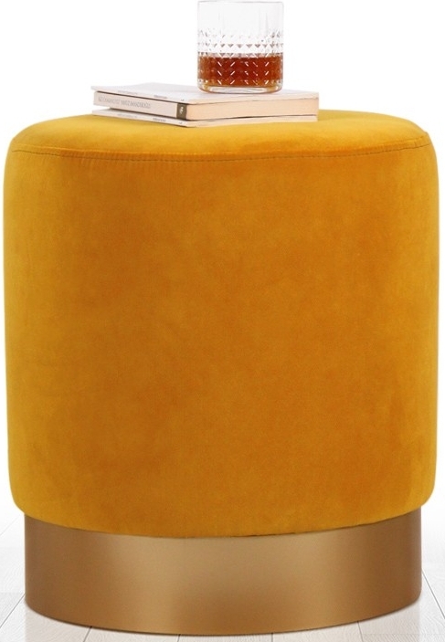 Sittpuff av trä. Klädd med sammet. Stoppning av skum. Maxvikt: 160 kg.