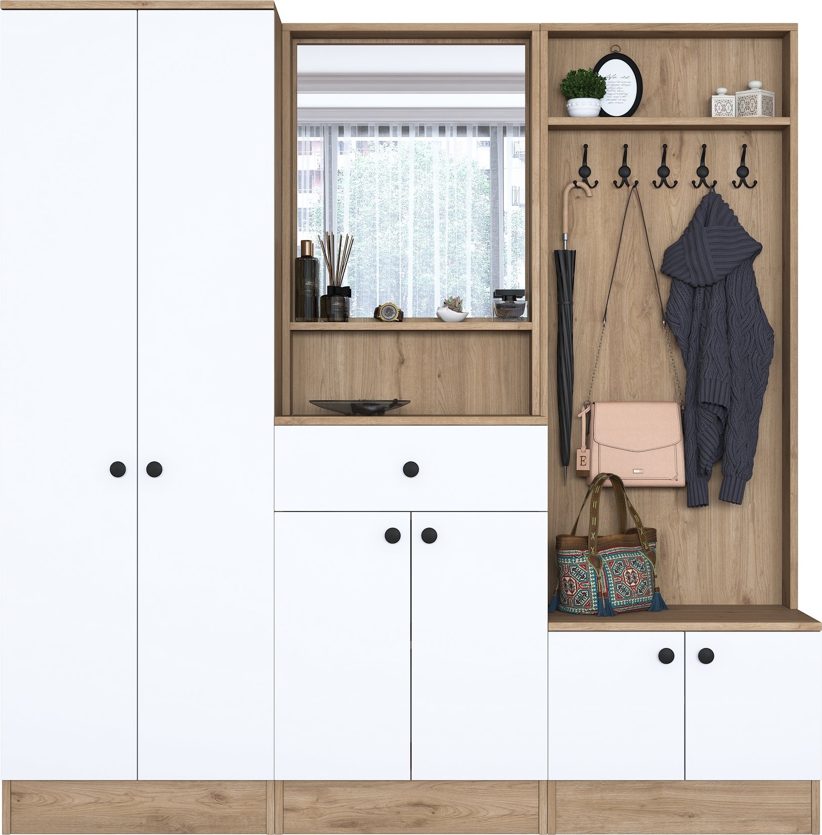 Mendy hallmöbel 180 cm - Valnöt/vit