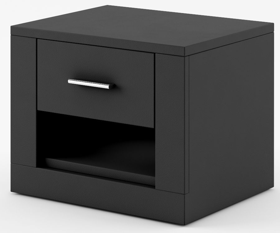 Ett snyggt och mysigt sängbord med modern design. Tillverkad i MDF med goda förvaringsmöjligheter i form av en låda och en underhylla som är perfekt för tidningar eller böcker. Handtag av plast med blank finish. Levereras omonterad.