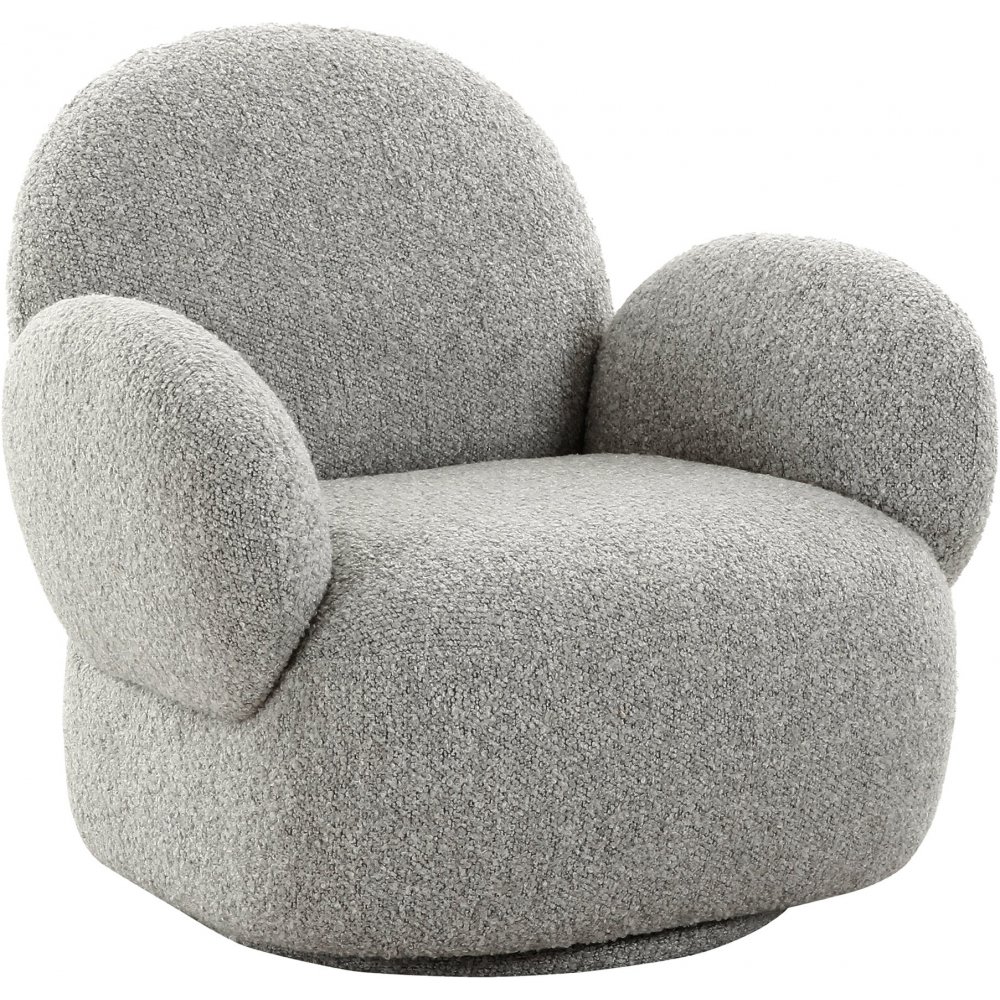 Fåtölj av plywood med klädsel av boucletyg. Levereras monterad.