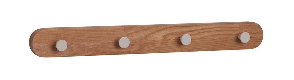 Tidlös och praktisk kroklist i massiv och fanerad lackad ek. Fyra krokar i metall. Kroklisten ingår i serien Metro.