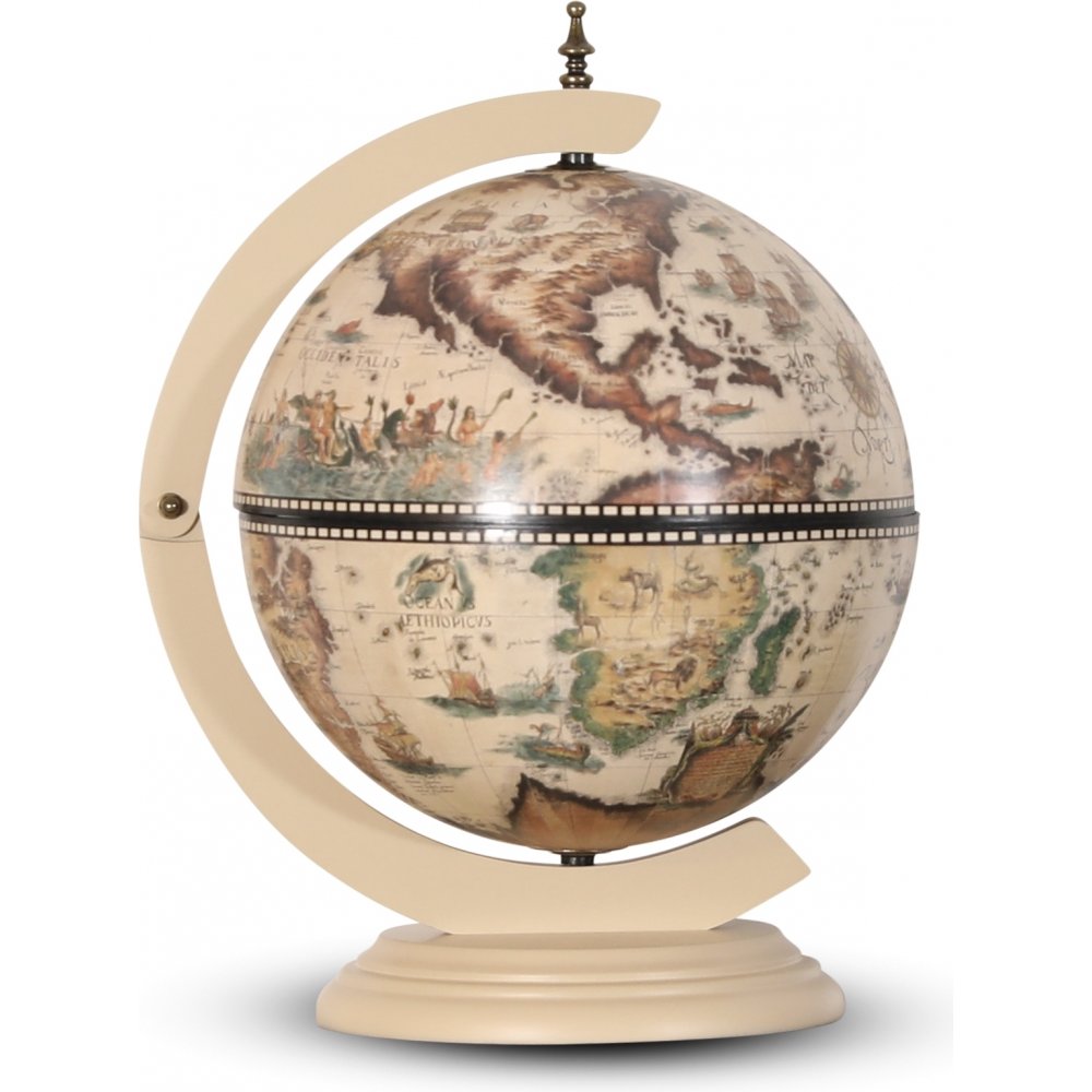Klassisk barglob med förvaring för flaskor och dylikt. Denna modell är i utförande med vit snyggt svarvad bottenplatta.
