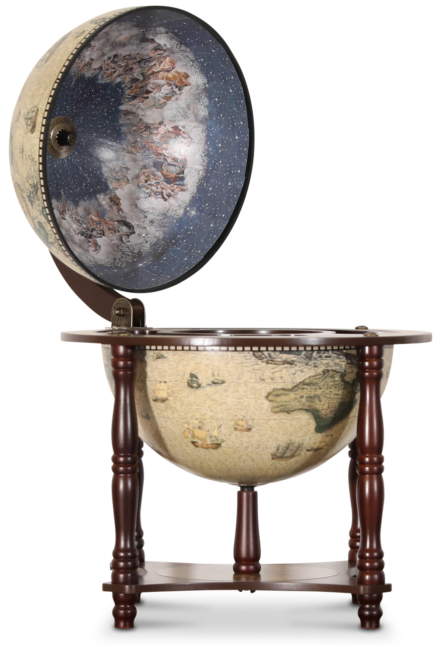 Klassisk barglob med förvaring för flaskor och dylikt. Denna modell är i utförande med brunt underrede med svarvade ben samt underhylla i matchande mönster.