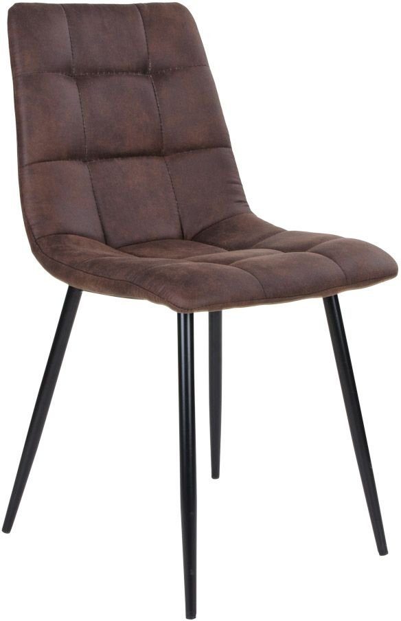 Stol i mörkbrunt microfiber med svarta ben.