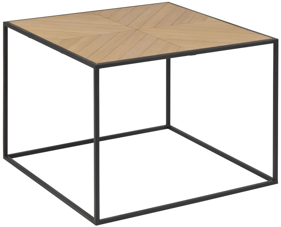 Snyggt soffbord med en modern design. Bordsskivan är av mycket fint Paulowania trä med ett snyggt rutigt mönster med benen är av svartmålad metall som är pulverlackerad.