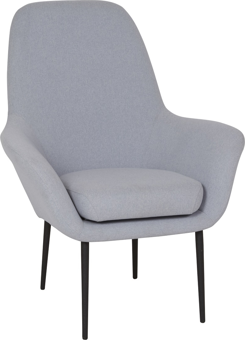 Fåtöljen Milano i ljusgrått tyg med benstativ i svart metall. En lättplacerad fåtölj med en modern skandinavisk design.