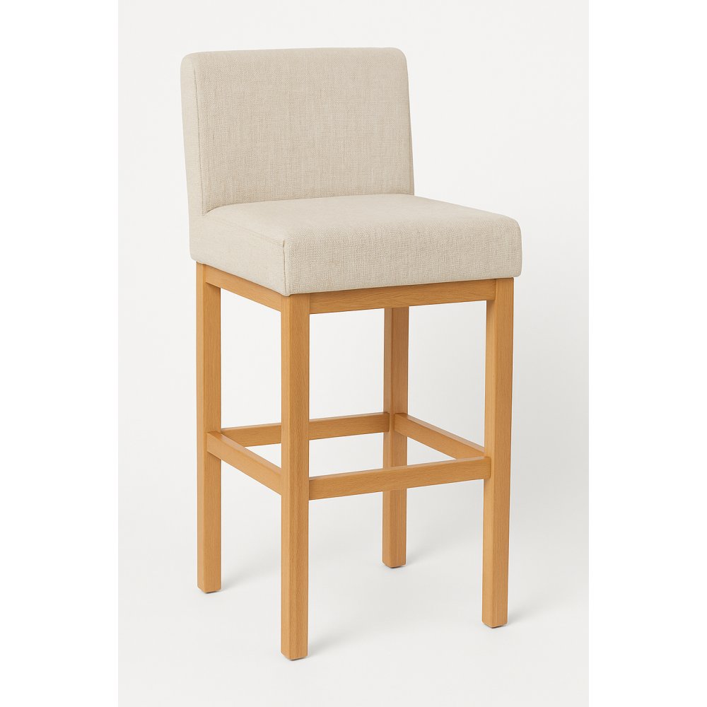 Miles är en elegant och tidlös barstol som kombinerar komfort med enkel design. Den mjukt stoppade sitsen och det låga ryggstödet ger en bekväm sittupplevelse även under längre stunder, medan det ljusbeige tyget med diskret struktur tillför en varm och naturlig känsla till rummet.