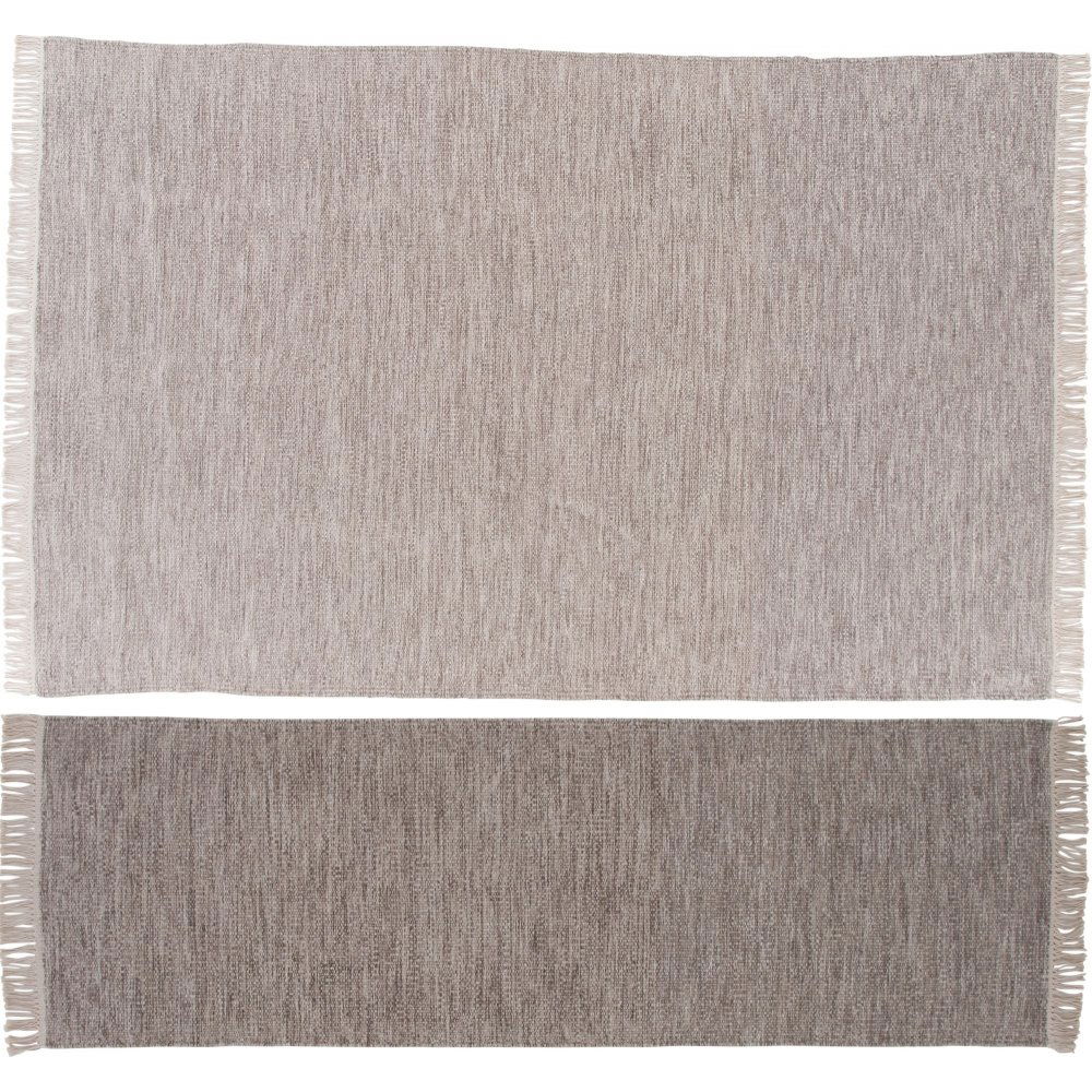 Stilren ullmatta i jordnära kulör. Handvävd ullmatta med ett spräckligt mönster i beige och bruna nyanser och dekorativa fransar på kortsidorna. Ullmattans egenskaper gör den enkel att placera i de flesta rummen då materialet är robust och tåligt.